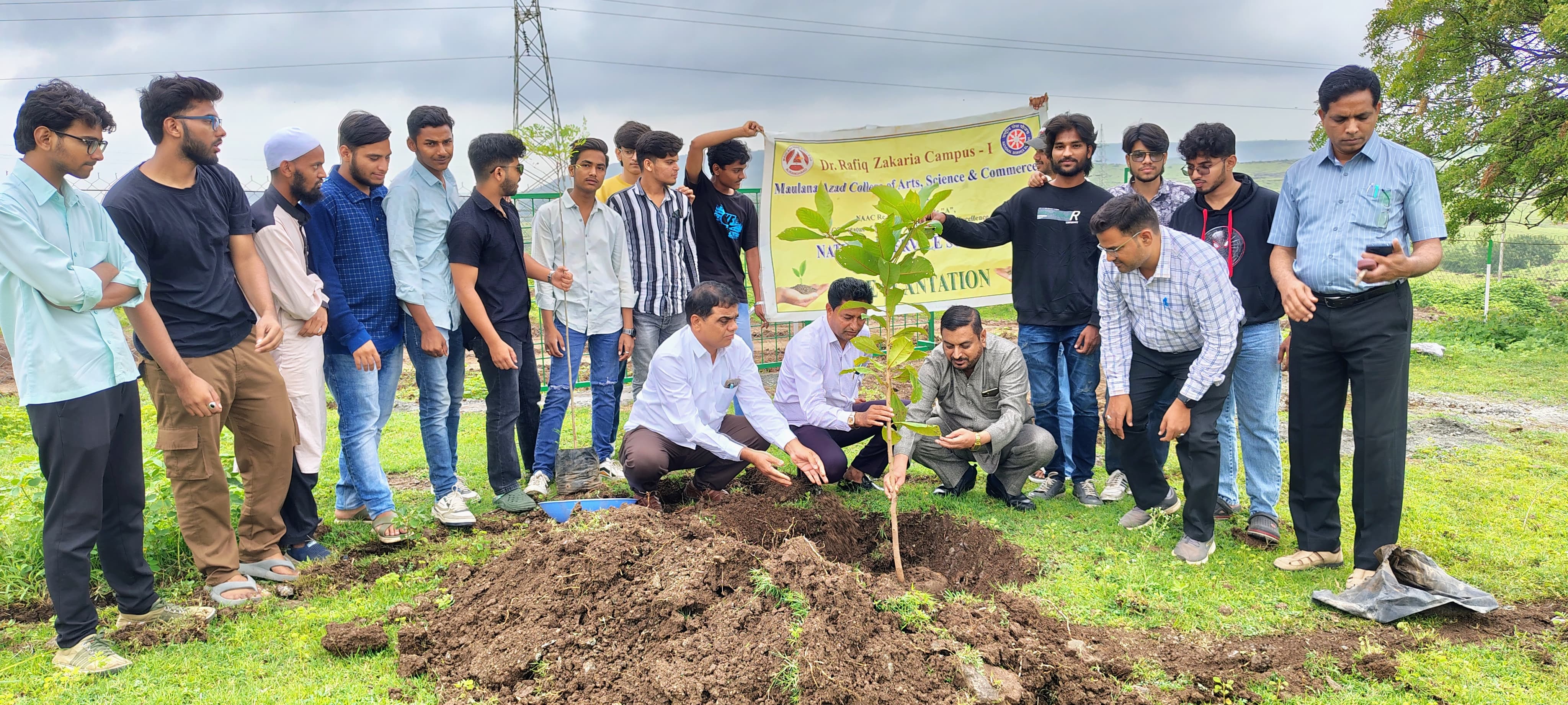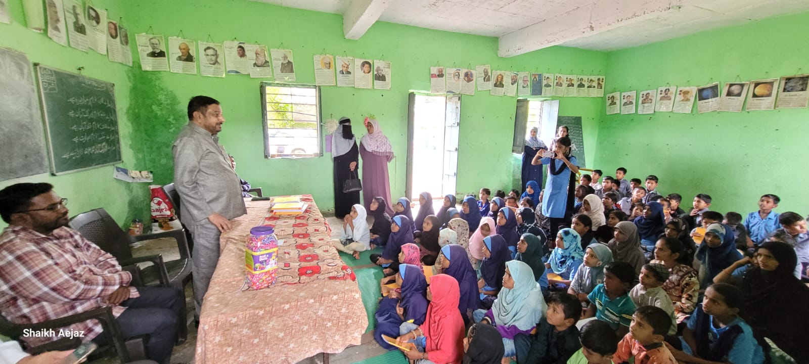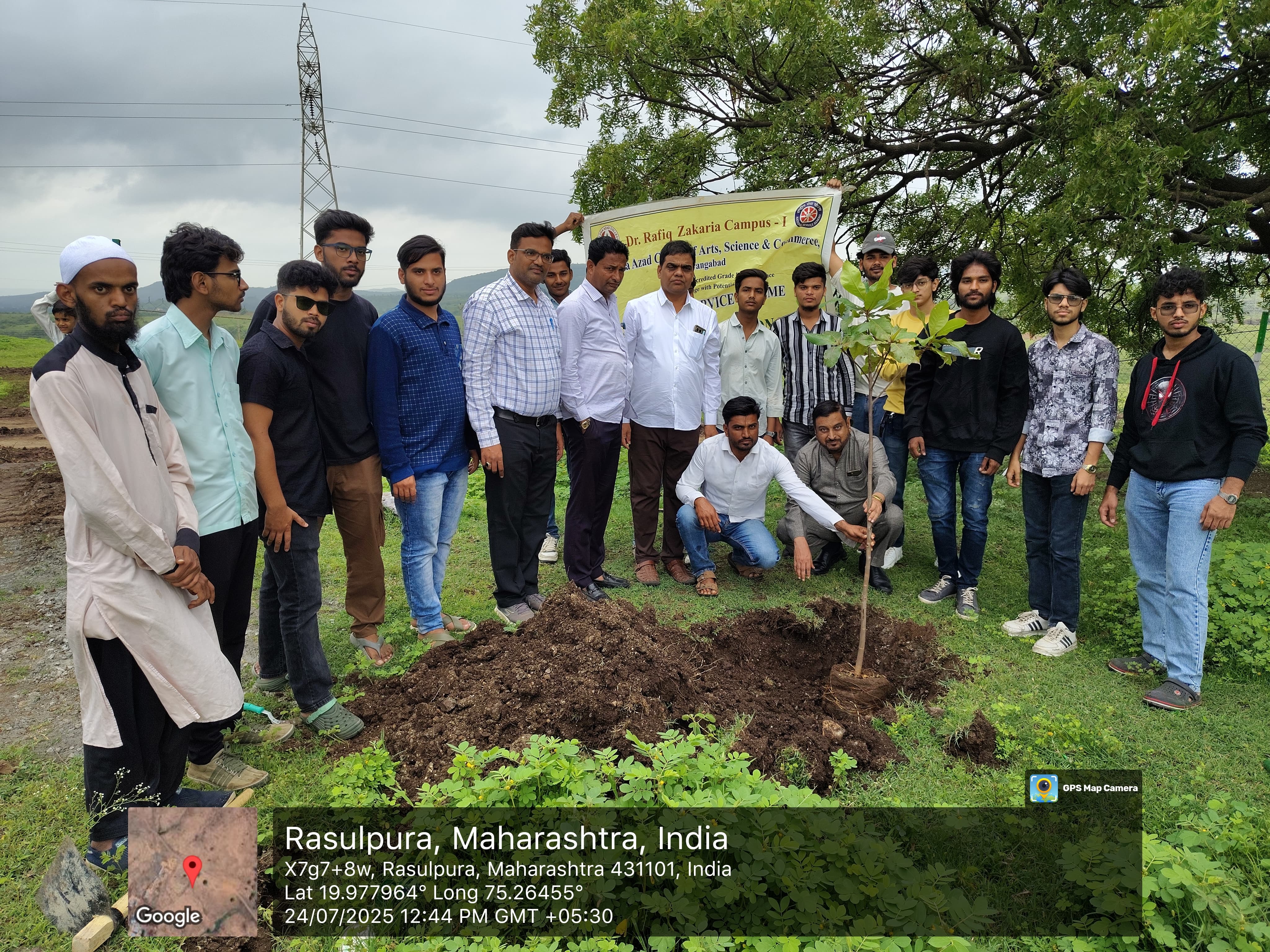 A tree plantation drive was conducted at the NSS-adopted village Rasoolpura, where 45 saplings were planted in the Kabrastan premises. Master Faizan, a Class V student of Zilla Parishad Marathi Medium School, who secured 82% in the Scholarship Exam, was felicitated and gifted a school bag, while notebooks and chocolates were distributed to other school children with the. hands of Principal Dr.Mazhar Ahmed Farooqui Sir and Mr.Mysa Pathan ( Up Sarpanch, Rasulpura Village) NSS Program Officer Dr. J.D. Shaikh, Dr. Musa Razzak, faculty members Dr. Sayed Sultan and Dr. Ashfaq Khan, along with NSS volunteers, were present for the event.