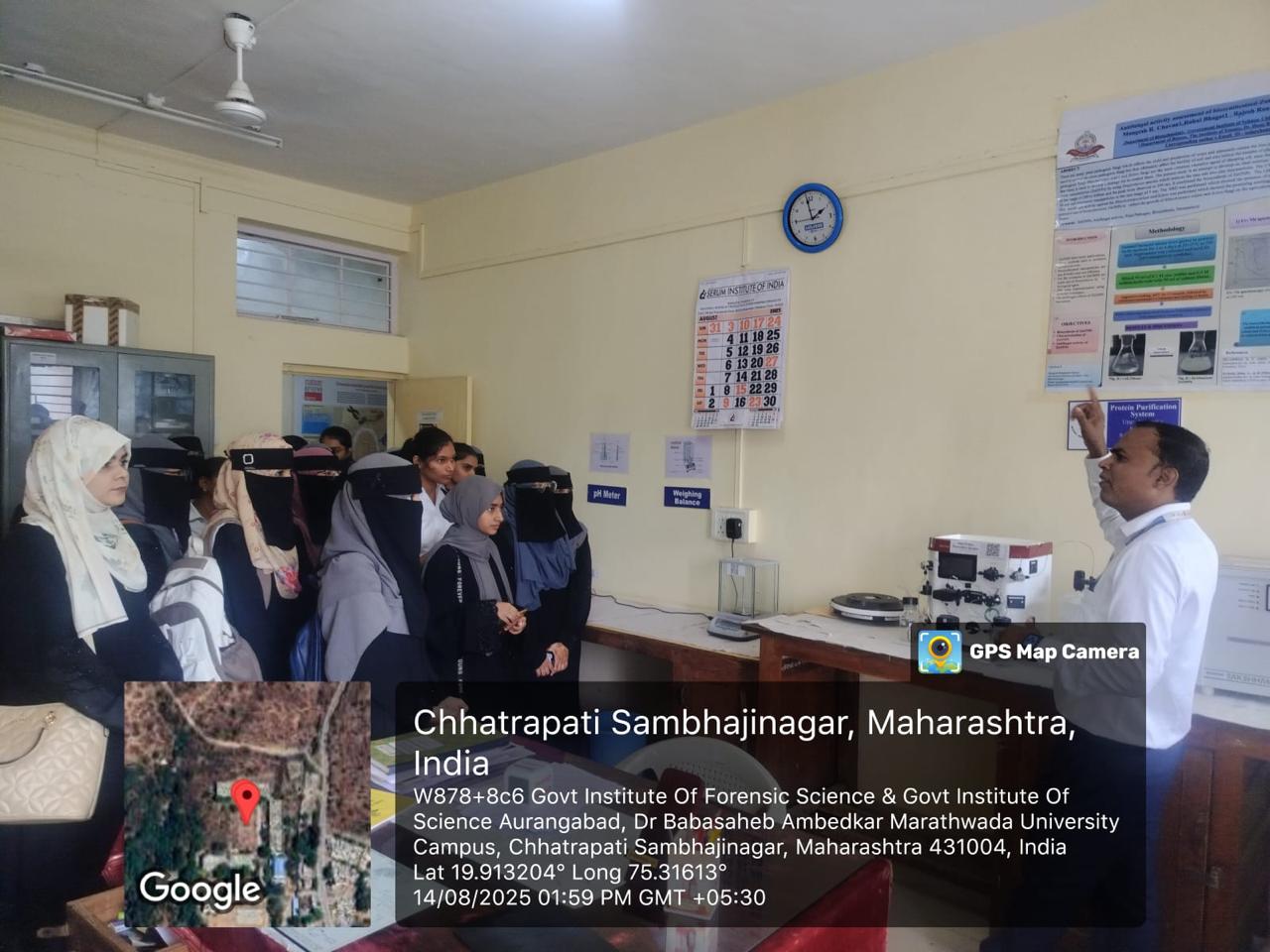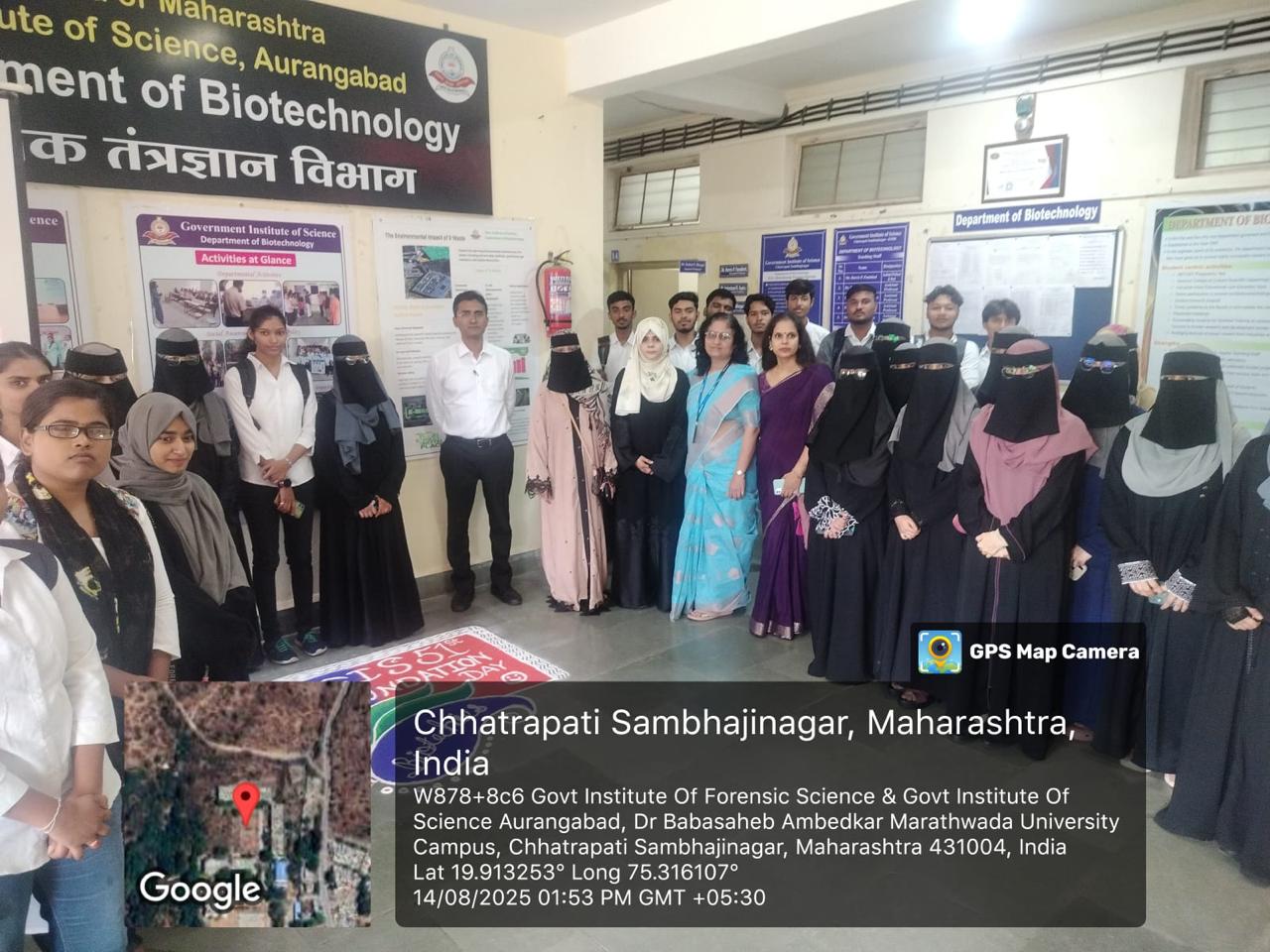 Under the able guidance of Principal Dr. Mazhar Ahmed Farooqui Sir, Today on 14th August Biotech students of Maulana Azad College visited the Government Institute of Science, Chh. Sambhajinagar for an inspiring lecture by Prof. Mahendra Shirsat Dean, Faculty of Science & Technology. They explored Microbiology & Biotechnology departments, witnessed advanced research instruments, and engaged in interactive sessions with senior faculties. This enriching visit was successfully organized through the dedicated efforts of Dr. Reshma Jaweria, Head of the Department. Teaching staff Mrs. Mehvish Fatima and Ms. Saniya Shaikh accompanied and guided the group of 50 enthusiastic students throughout the visit.