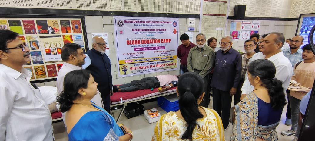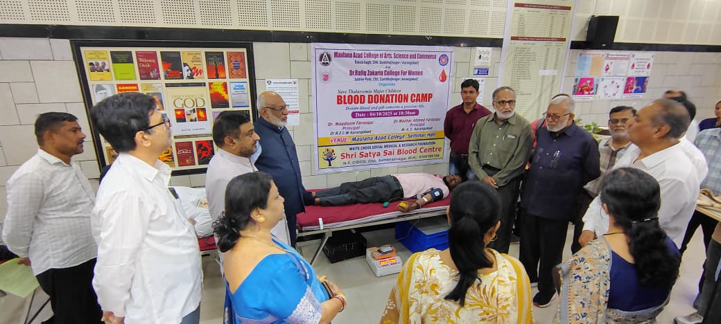 The NSS Unit of Maulana Azad College of Arts, Science and Commerce in Aurangabad successfully organized a blood donation camp on October 4, 2025. The event was inaugurated by Principal Dr. Mazhar Ahmed Farooqui, Dr. Maqdoom Farooqui, and Dr. Vidya Pradhan, highlighting the significance of voluntary blood donation. Event Highlights: - Number of Donors: 50 students donated blood, contributing to the noble cause. - Organizers: The camp was held in collaboration with Dr. Rafiq Zakaria College For Women Aurangabad and Satya Sai Blood Bank. - Objective: Raising awareness about blood donation and collecting blood units for patients in need. The Significance of Blood Donation: - Saving Lives: Blood donation can save up to three lives, making it a vital act of kindness. - Community Service: The event promoted a sense of community and social responsibility among participants ¹.