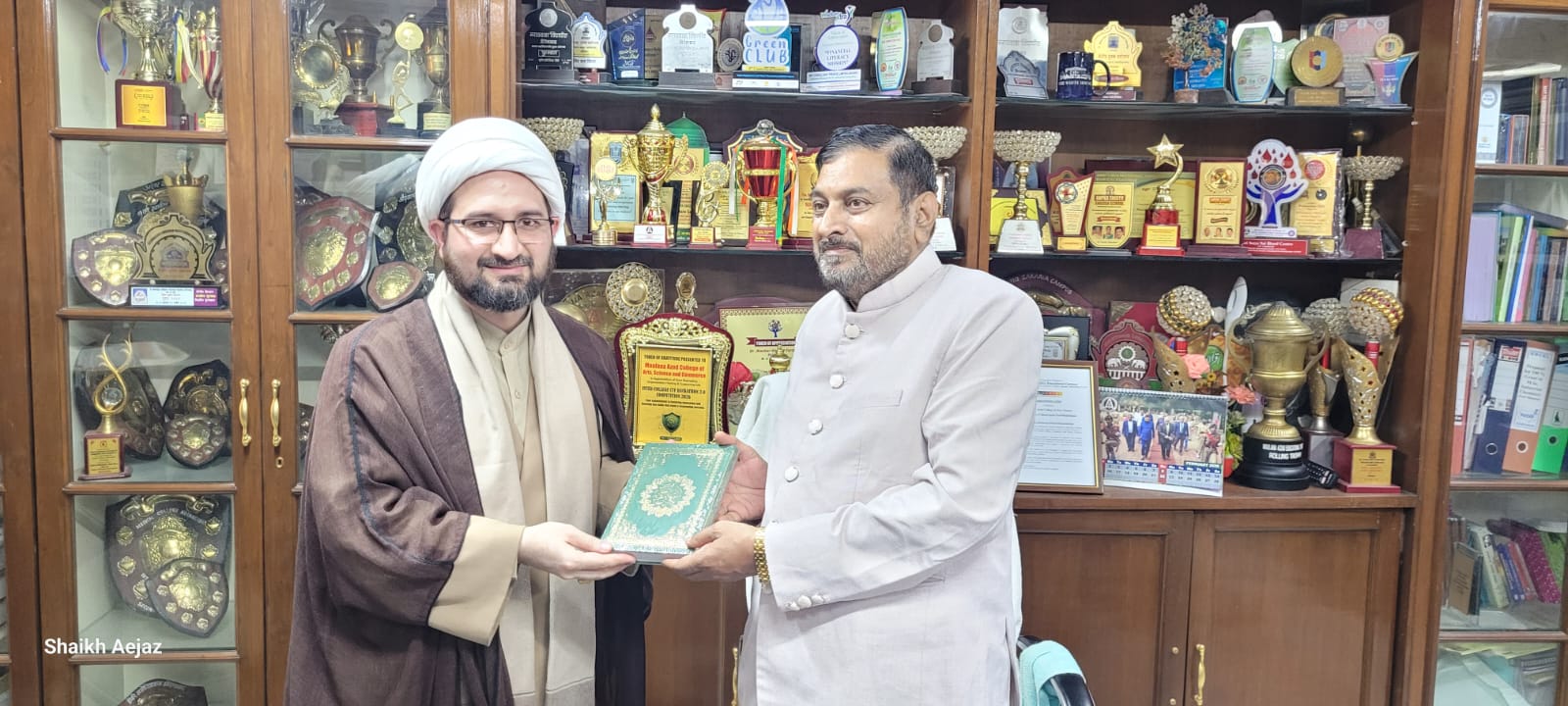 Goodwill Meeting of the Deputy Representative of Iran’s Supreme Leader, Dr. Mohammad Hossein Ziaei Nia, and Other Dignitaries with Dr. Mazahar Ahmad Farooqui Principal of Maulana Azad College, Aurangabad, 7 February 2026: Respected Dr. Mohammad Hossein Ziaei Nia—a Hafiz and reciter of the Holy Qur’an, PhD from, Al-Mustafa International University, Iran; Representative of the Supreme Leader of Iran at Qom University; along with members of the Iran Council, Delhi—Mr. Mohammad Hossein Suratwala, Assistant Professor at Al-Mustafa International University and Mission Director, Al-Kisa Foundation (India); Maulana Syed Jafar Raza Aamili, holding a Master’s degree from Lebanon and Representative of Ayatollah Sheikh Mohammad Al-Yaqoubi from Gujarat; Mr. Reza Isfahani from Bengaluru, Representative of AKO Kian Makran Trading Co.; and other distinguished guests visited Maulana Azad College of Arts, Science and Commerce, Rauza Bagh, Aurangabad, today. The Principal, Dr. Mazahar Ahmad Farooqui, warmly welcomed the guests by presenting them with books authored by Dr. Rafiq Zakaria. The delegates held discussions on India–Iran relations, visited various departments of the college, and expressed their intention to further strengthen India–Iran relations in the future.