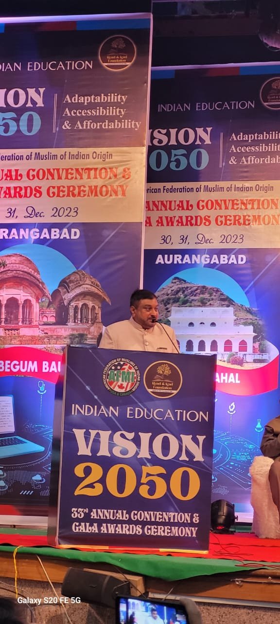 Dr. Mazhar Farooqui Sparks Vision 2050 at AFMI's Convention! ???? ????️ Date: December 30, 2023 ???? Venue: Seminar Hall, Dr. BAMU Dr. Mazhar Farooqui, Principal of Maulana Azad College, Aurangabad, illuminated the path to Vision 2050 during a thought-provoking address at the American Federation of Muslim of Indian Origin (AFMI) organized convention. ???? Congratulations to the organizers for choosing such an impactful title for this momentous event! ???? Dr. Farooqui delved into the concerning trend of low Muslim enrollment in higher education, stressing the urgent need to address this gap. ???? "Quality education stands as our beacon, and we must navigate its challenges to ensure accessibility for all," Dr. Farooqui highlighted. ???? In the realm of Agri-technology, Dr. Farooqui envisioned strides towards advancement, shaping a brighter future for agriculture education. ???? Aligning with the National Education Policy, Dr. Farooqui emphasized the importance of adapting and adjusting to maximize its potential for progress. ???? Providing factual insights, Dr. Farooqui shed light on the current status of Muslim education in India, encapsulating the challenges faced. ???? Suggestions were shared, advocating for proactive measures to bridge the enrollment gap, enhance education quality, and embrace technological advancement in agriculture. Let's unite in turning these insights into actions, forging a future where education is inclusive and progressive! ????✨ #Vision2050 #EducationForAll #AFMIConvention #DrMazharFarooqui Together, towards a more educated and empowered tomorrow!