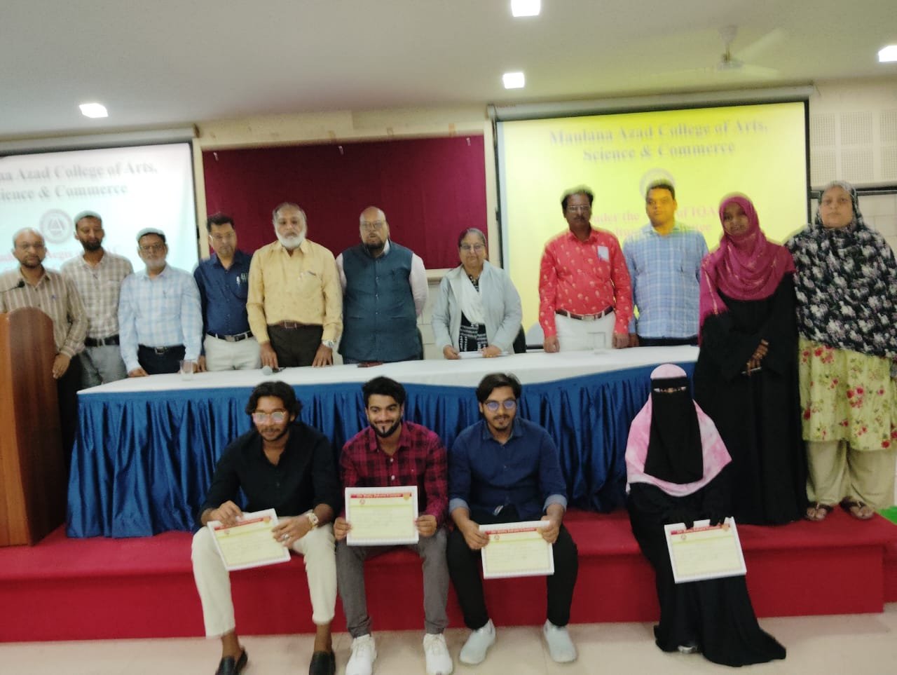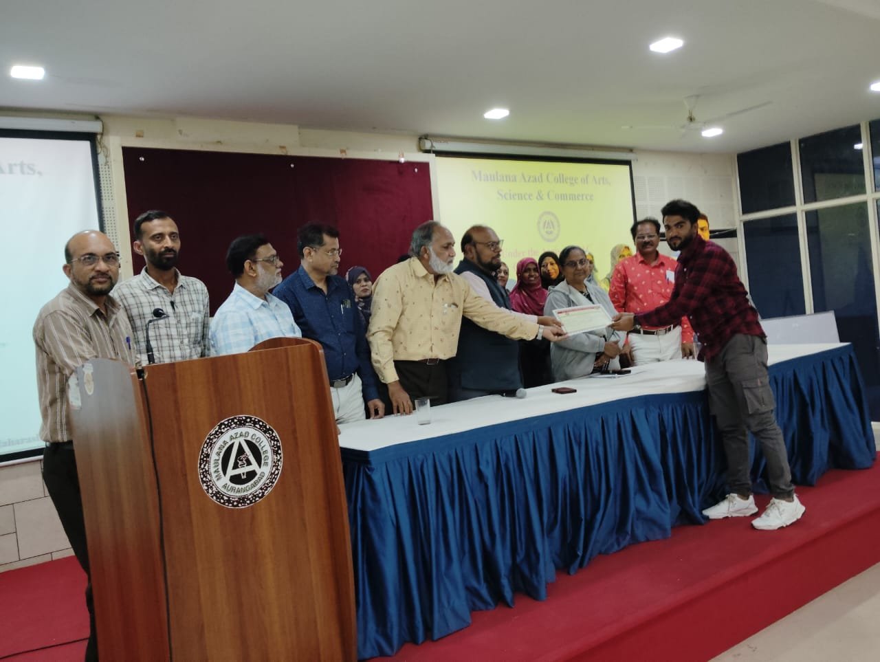 Cultural Event Committee organized Ghazal Singing Competition for students on 13-1-24 at 11am under the guidance of Principal Dr. Mazahar Ahmad Farooqui in seminar hall. Vice principal Dr. M.A. Bari,Committee incharge Prof. Rafiuddin Naser. IQAC Coordinator Prof. Aditi Bhattacharya, Prof. J. D. Shaikh and Dr. Siddarth Parkhre worked as a judge In the competition. Dr. Abdul Rab ,Dr. Tarannum shaikh Dr. Ayesha,Dr. Naveed Quazi ,Dr. Sk.Akhil, Dr. Iliyas Ansari, Mrs. Mahejabeen N.S., Mrs.Naseema, MS SabreenaYameen was present. 16 competitors presented their ghazals while more than 80 students enjoyed the competition.