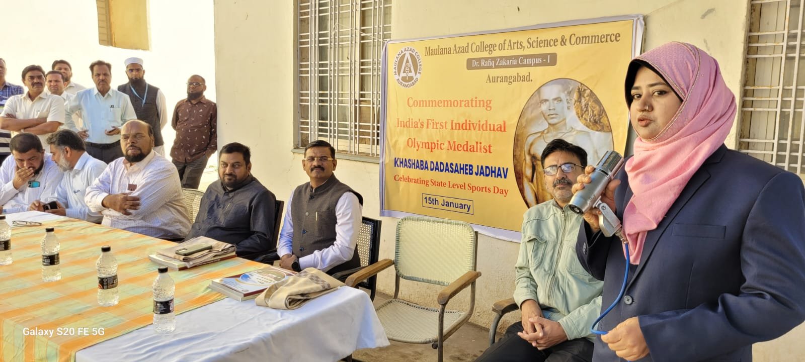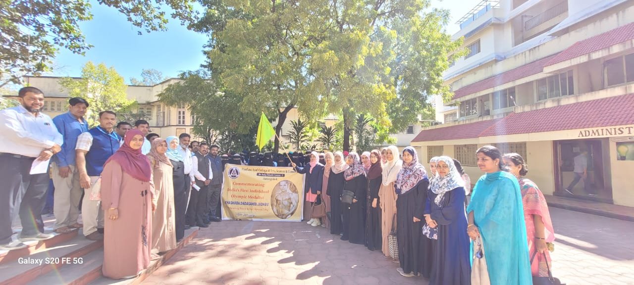 State level sports day celebrated in Maulana Azad College on the occasion of first Olympic medal winner Khashaba Jadhav's birth anniversary. On this occasion governer nominated senate member Dr. Kedar Rahane, Assistant professor from Lokseva College of Arts and Science Dr.Asma Parveen were present as chief guests. Chief guests and Principal Dr. Mazhar Ahmed Farooqui guided students. Maulana mushir Nadvi sir started program with recitation of Holy Quran, Dr Moin Farooqui vote of thanks. Mr Feroz Pathan conducted function. Vice principal Dr.M.A. Bari,Vice Principal Shaikh Abbas Sir, teachers, students were present.
