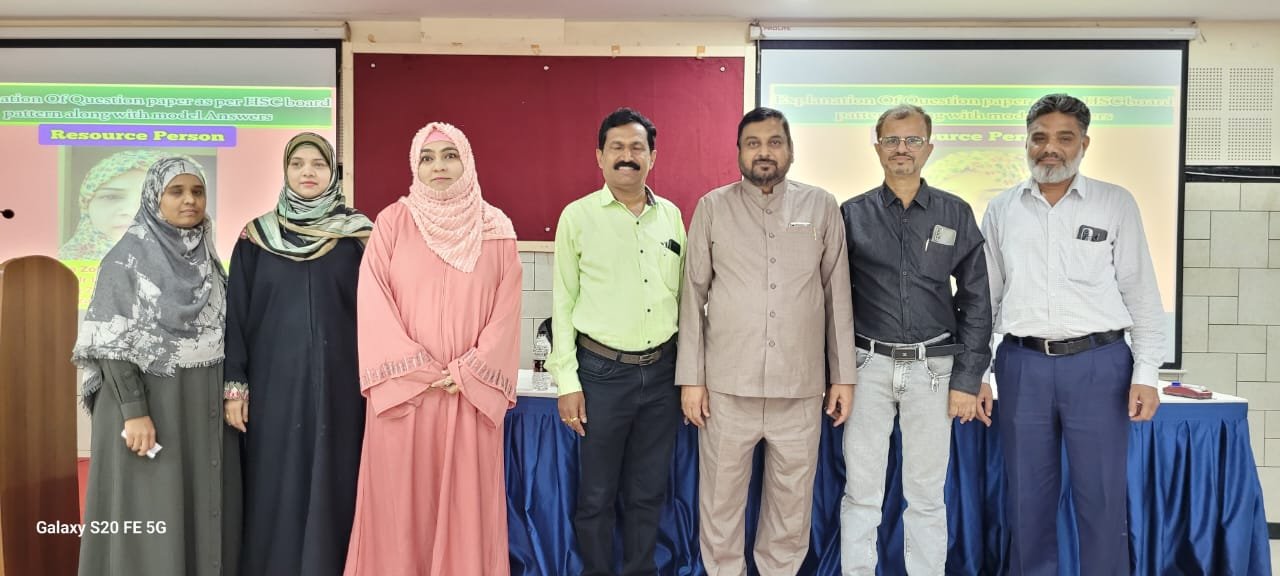 This workshop on "HOW TO SOLVE HSC BOARD EXAMINATION MATHEMATICS QUESTION PAPER " organized by "DEPARTMENT OF MATHEMATICS". All the arrengements of workshop successfully done by Mrs Arshiya Jabeen(Sub.Incharge of Mathematics ) under the guidance of OUR BELOVED HONORABLE Principal "Dr Mazhar Ahmed Farooqui "sir , Vice principal " Shaikh Abbas sir "& "Dr Daime S.F "sir.
