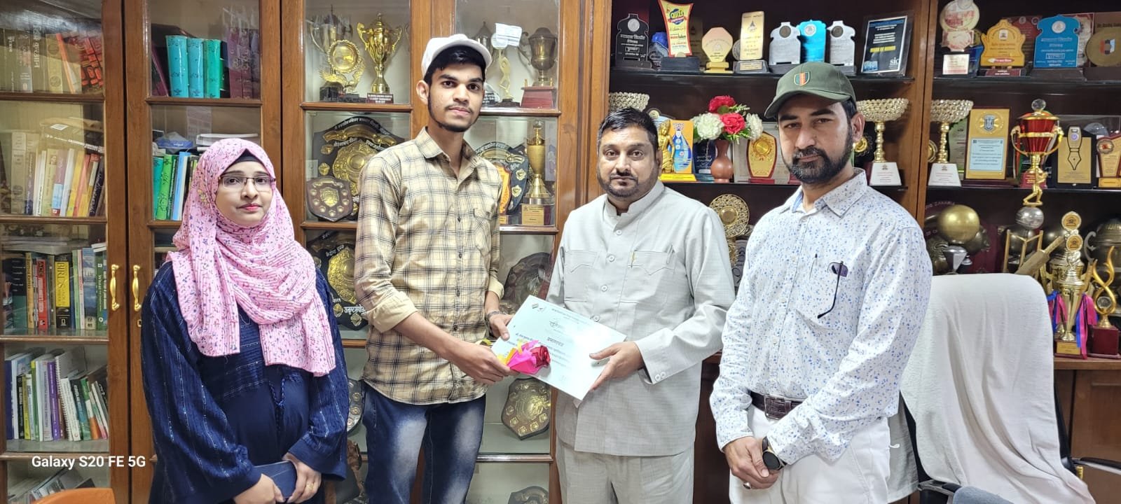 1)Umme Hani Salma won the prize for short film(Rs-11000/-, and 2) Shaikh Musab(3000/-) got the prize in Slogan competition on the occasion of National voters day organised by Collector's Office, Aurangabad. Principal, Dr.Mazhar Ahmad Farooqui congratulated the students and Dr. Mujtaba Quadri on this occasion