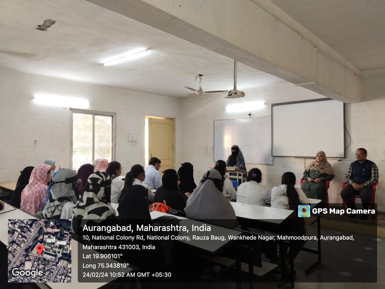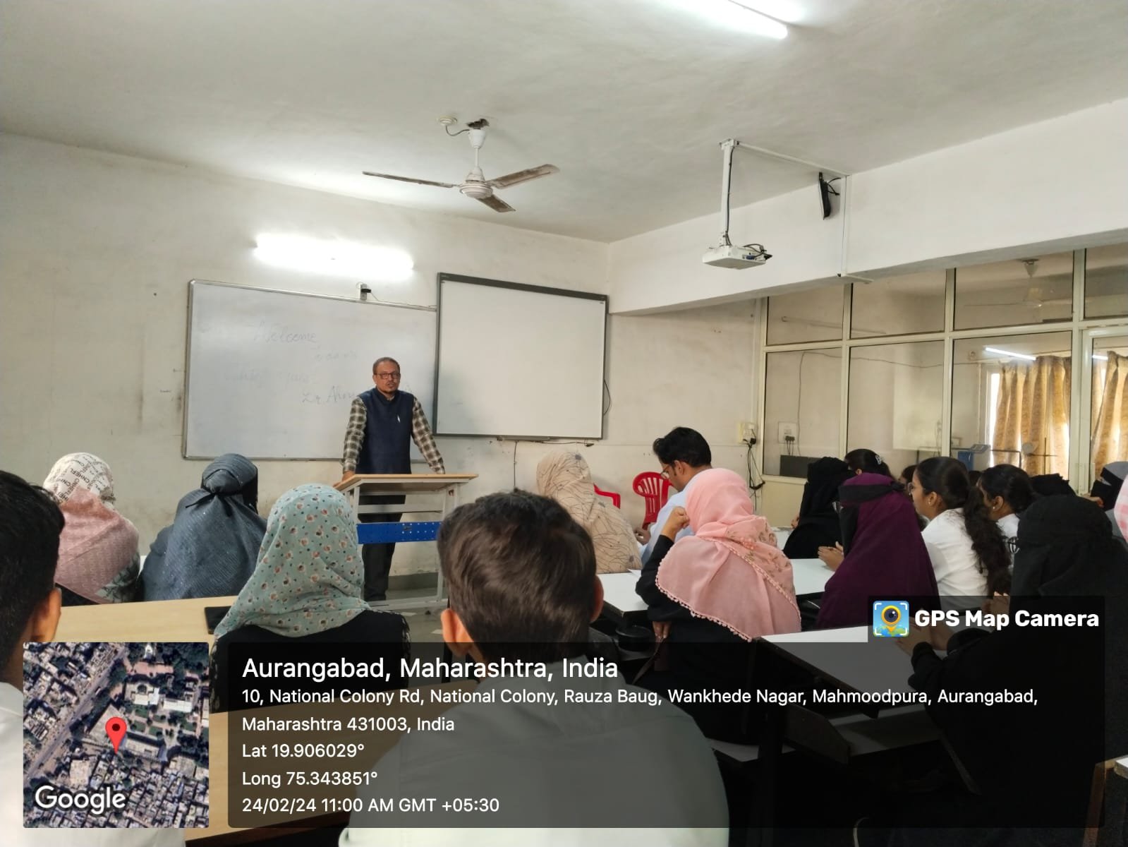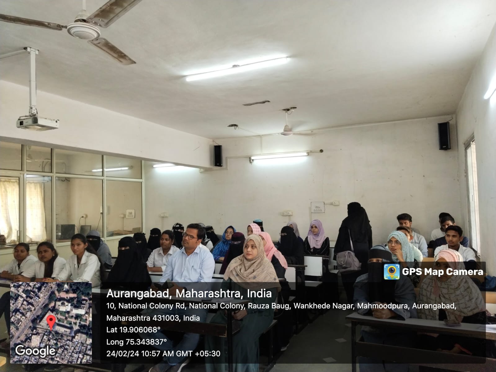 Under the guidance of Principal Dr.Mazahar Ahmed farooqui sir Dept.of Biotechnology and Chemistry organized a guest lecture on "Career Guidance Counseling & preparation of Exam" by Dr. Ahmed Ali, Dept. of Life Sciences, University of Mumbai. All the staff members and 50 students were present in the lecture.