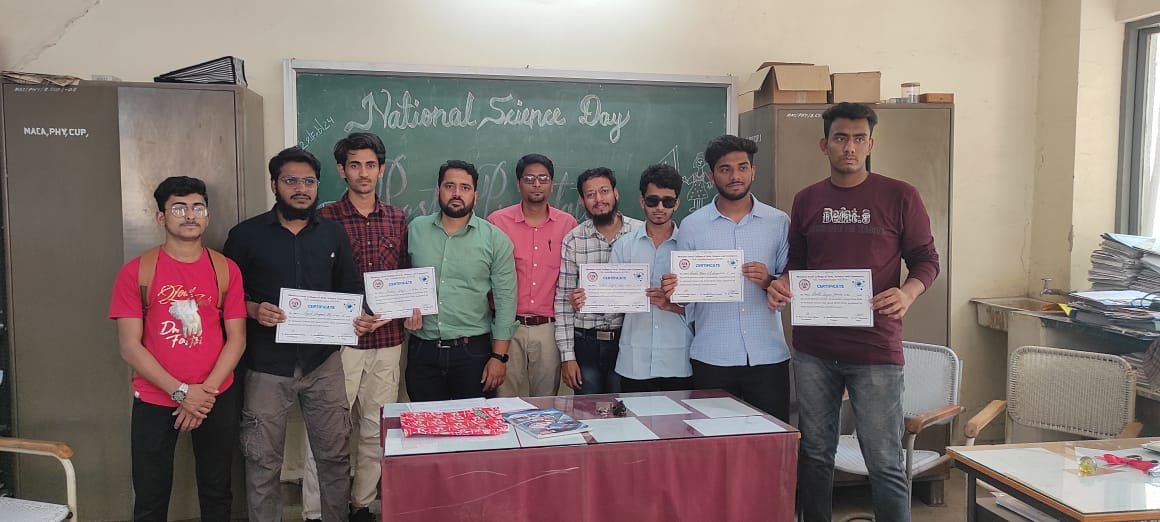 Poster Presentation competition held in the Department of Physics and Electronics on National Science Day.. *Certificates distributed to winners by the hands of the Principal Dr. Mazahar Ahmed Farooqui and Judge Dr. Rajeshaikh (Department of Physics, Government College or Arts and Science,Aurangabad) *