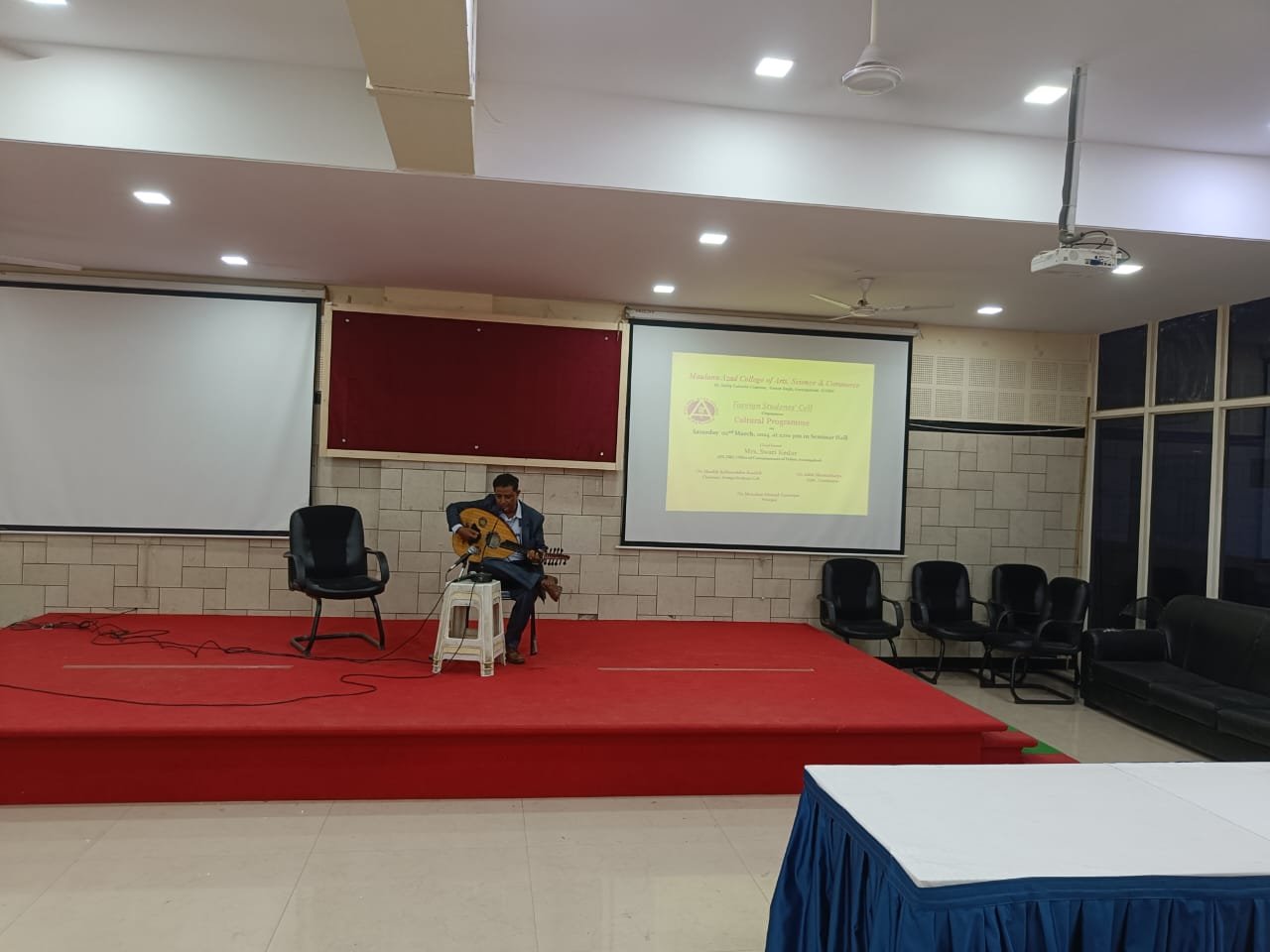 Foreign Students' Cell organised a Cultural Programme under the supervision and support of Principal, Dr Mazahar Ahmad Farooqui on 02/03/2024. The members of IQAC along with Coordinator, Dr. Aditi Bhattachrya graced the event. Dr Shaikh Kalimoddin Rashid, Chairman, Foreign Students' Cell conducted the proceedings while Dr Shaikh Aakil proposed the vote of thanks. Foreign students represented their culture through folk dance and songs. Mr. Sohail and the members of the cell took efforts to make the event a memorable cultural fiesta.