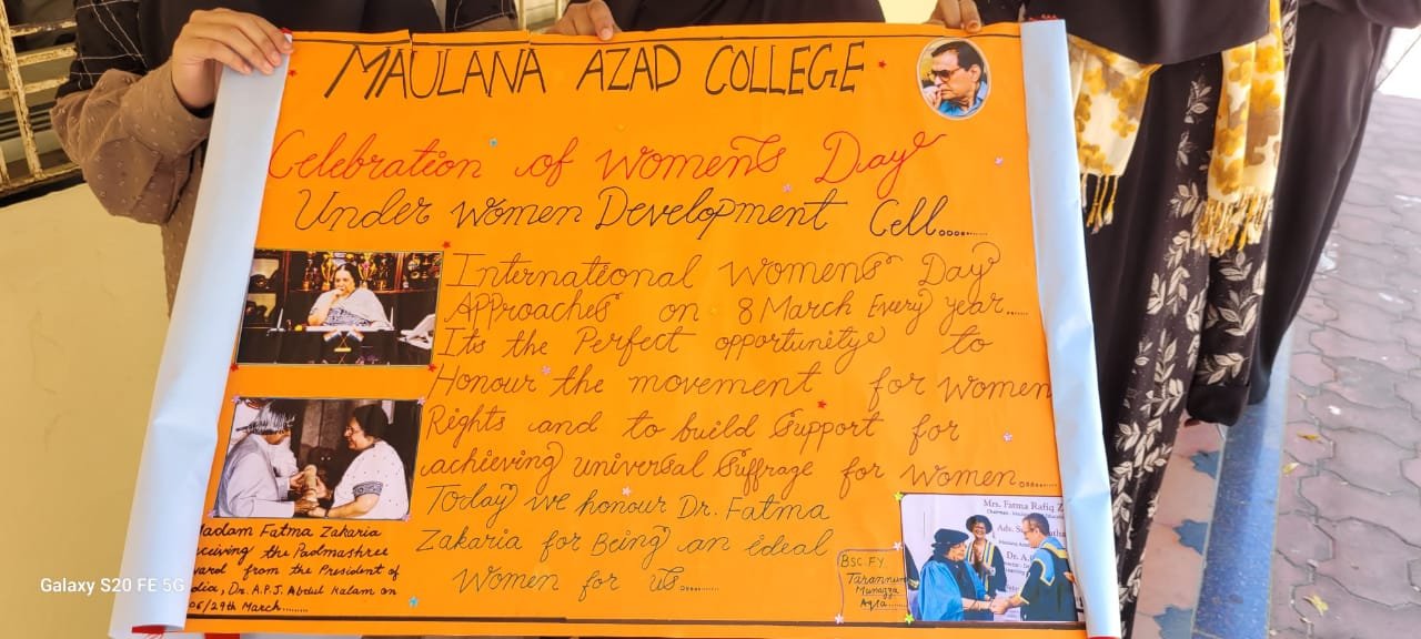 Students prepared a wall magazine under the guidance of Dr. UK Asema (I/C Women Development Cell) in the honour of Madam Fatma Rafiq Zakaria on the eve on International Women's Day. It was inaugurated by Principal Dr. Mazahar Farooqui. Dr. Tarannum Shaikh and Dr. Samreen Farooqui provided their inputs for the poster.