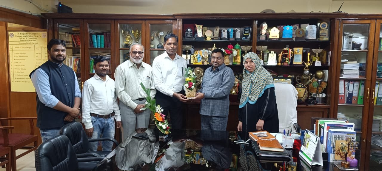 Principal Dr. Mazahar Ahmad Farooqui is being congratulated by Prof. Rafiuddin Naser and faculty, Dept of Botany for his continuous guidance and keen interest in research centres of the college. Mr. Muneer Ahmad Khan successfully defended his Ph.D. Viva Voce Examination under the supervision of Dr. Ashfaque Khan. Hon. Principal has further congratulated and felicitated the Guide and Dept. of Botany.
