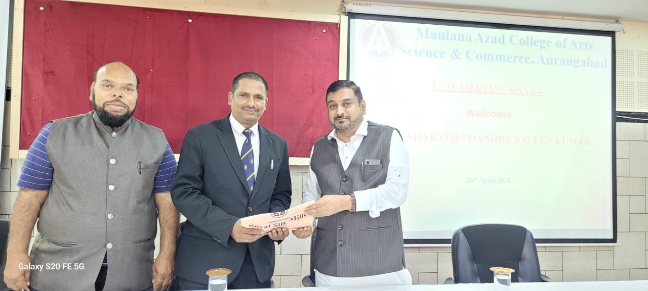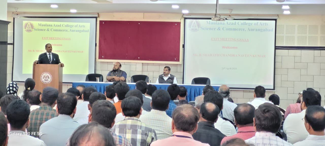 Under the able guidance of Principal Dr.Mazahar Ahmed Farooqui and the quest for continuous improvements , Maulana Azad College has been assessed by the U.S based Global standardization and Accreditation agency through a detailed questionnaire as well as on-site visit from 10 a.m to 9 p.m on 25th April 2024. The honorable assessor Mr.B.Sharath Chandra Naveen Kumar has given his wonderful concluding remarks with respect to the depth of teaching - learning, research, outreach, entrepreneurial pursuits addon courses etc, in the exit meeting on 26th April 2024. The concluding meeting was with IQAC and officials of GSAAA- Dr.Richard Morris, Mr.Brian Richardson, Dr.David Mathews, ALex Martin, Dr.James Brown and Prof.Stella Myles, who also declared the award of GSAAA accreditation. It was an excellent opportunity to take the college to international standards ably supported by our faculties and the nonteaching staff. The Principal Dr.Mazahar Ahmed Farooqui takes this opportunity of thanking Chairman, Mr.Farhat Jamal Sir for his consent and motivation and also congratulating all the faculties, office staff, Library and lab staff for working diligently to get this accreditation.