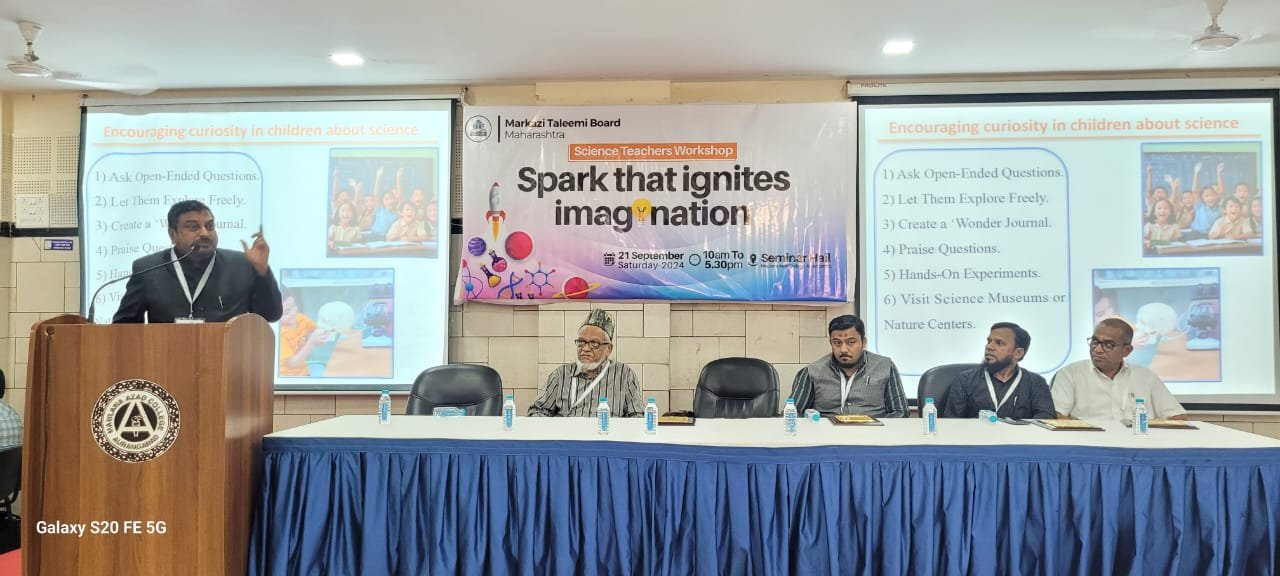 Dr Mazahar Farooqui delivering key note address in a science teachers workshop "Spark that ignites imagination" organized by Markazi Talimi Board, Jamat-e-Islami Hind, 120 teachers from allover Maharashtra attended the same.