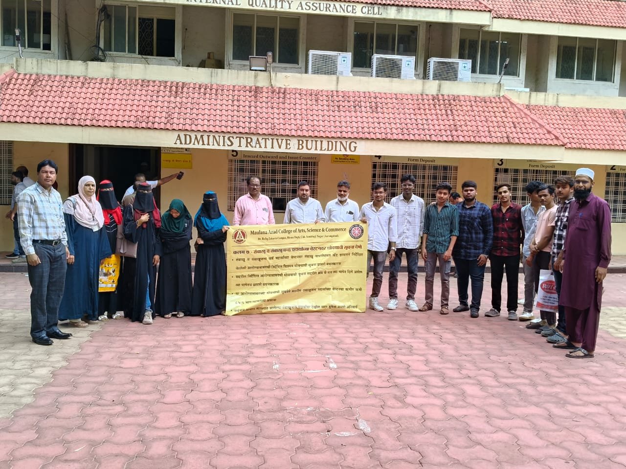"मौलाना आज़ाद कॉलेज में नशा मुक्ति कार्यक्रम आज 16 जून 2025 को डॉ. मज़हर अहमद फ़ारूक़ी सर प्रिंसिपल मौलाना आज़ाद कॉलेज, जूनियर कॉलेज के वाइस प्रिंसिपल श्री शेख़ अब्बास सर के कुशल मार्गदर्शन में नशा मुक्ति कार्यक्रम आयोजित किया गया। छात्रों को नशे के हानिकारक प्रभावों और उन्हें रोकने के तरीकों के बारे में जानकारी दी गई। कार्यक्रम का प्रबंधन डॉ. शहीना बेगम मैडम, मौलाना मुशीर नदवी सर (सदस्य नशा मुक्ति समिति) शेख़ मोहम्मद ज़ुबैर सर (सचिव नशा मुक्ति समिति) द्वारा किया गया।"