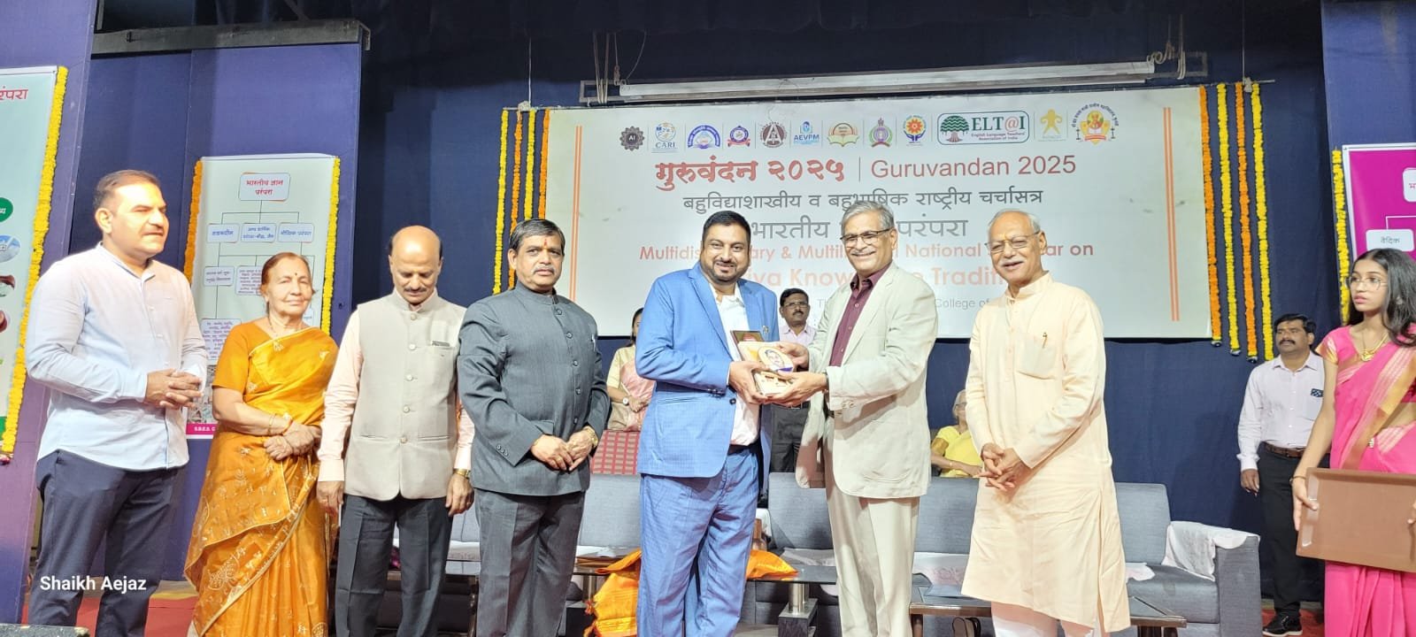 I am (Dr Mazahar Farooqui) honoured and felicitated, along with four other eminent teachers, at a ceremony held on 10th July at SB Science College, Aurangabad. The event was part of the national seminar "Guruvandan-2025" on the Indian Knowledge System (IKS). The felicitation was conducted at the hands of Hon'ble Vice-Chancellor Professor Vijay Fulari. Dignitaries present included Pro-Vice-Chancellor of Yashwantrao Chavan Maharashtra Open University, Jogindrasingh Bhisen; Principal Sarjerao Thombre, Member, Advisory Committee to the Vice-Chancellor, BAMU; and Dr. Gajanan Sanap, Chancellor-nominated Member of the Management Council.