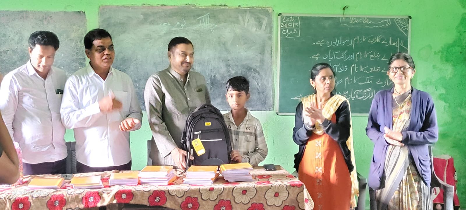 A tree plantation drive was conducted at the NSS-adopted village Rasoolpura, where 45 saplings were planted in the Kabrastan premises. Master Faizan, a Class V student of Zilla Parishad Marathi Medium School, who secured 82% in the Scholarship Exam, was felicitated and gifted a school bag, while notebooks and chocolates were distributed to other school children with the. hands of Principal Dr.Mazhar Ahmed Farooqui Sir and Mr.Mysa Pathan ( Up Sarpanch, Rasulpura Village) NSS Program Officer Dr. J.D. Shaikh, Dr. Musa Razzak, faculty members Dr. Sayed Sultan and Dr. Ashfaq Khan, along with NSS volunteers, were present for the event.