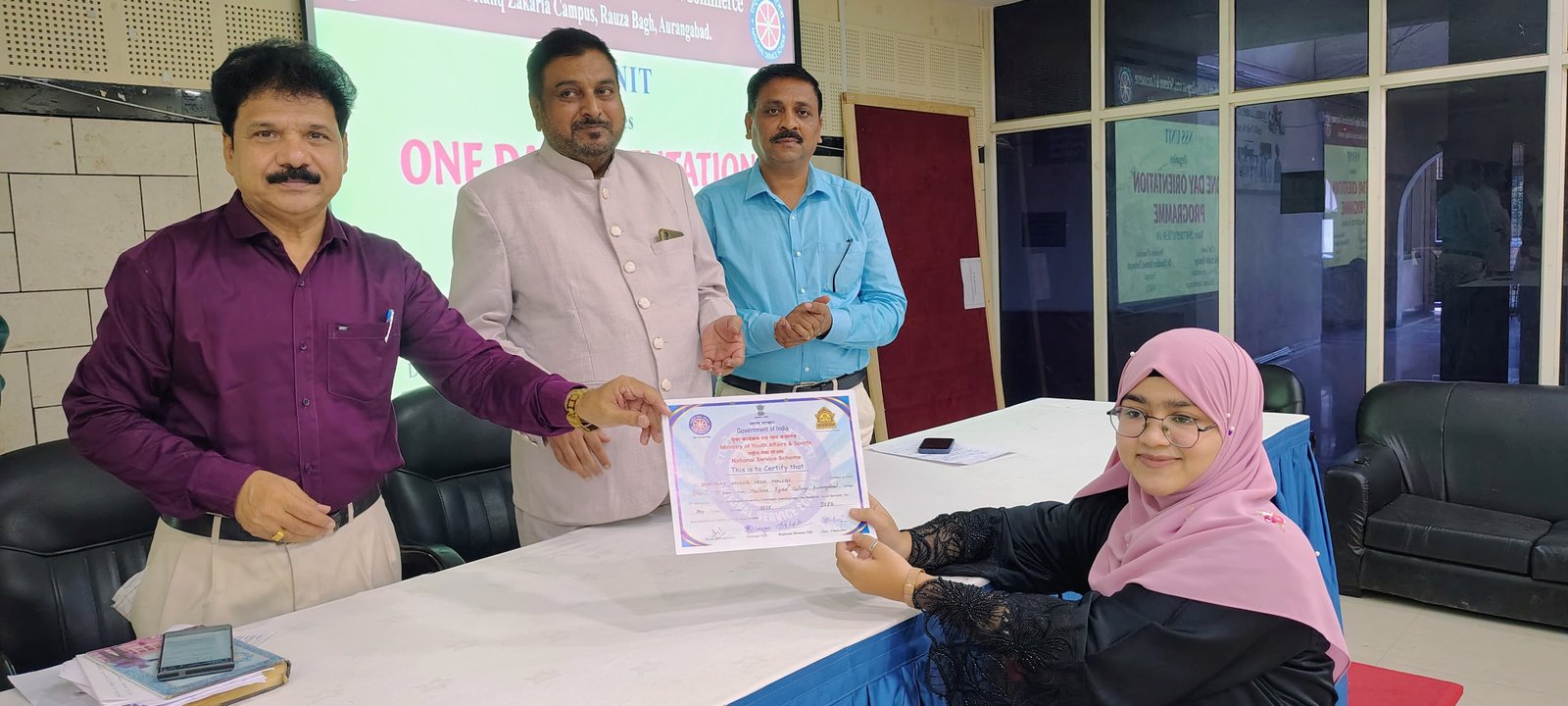 The NSS Unit of Maulana Azad College of Arts, Science, and Commerce in Aurangabad organized a one-day orientation program for NSS volunteers. The event featured Chief Guest Dr. Satish Dandge, Professor of Public Administration at Dr. B.A.M.U. Aurangabad, who delivered a lecture on the role of NSS and youth. Key highlights of the program - 106 NSS volunteers attended the programme. - A presidential address by Principal Dr. Mazhar Ahmed Farooqui sir - Distribution of Run Red Ribbon Marathon Rally Certificate which was organised by MSACS, Mumbai to the NSS volunteers The program aimed to introduce volunteers to the NSS philosophy, promote community service, and foster leadership skills among the youth.