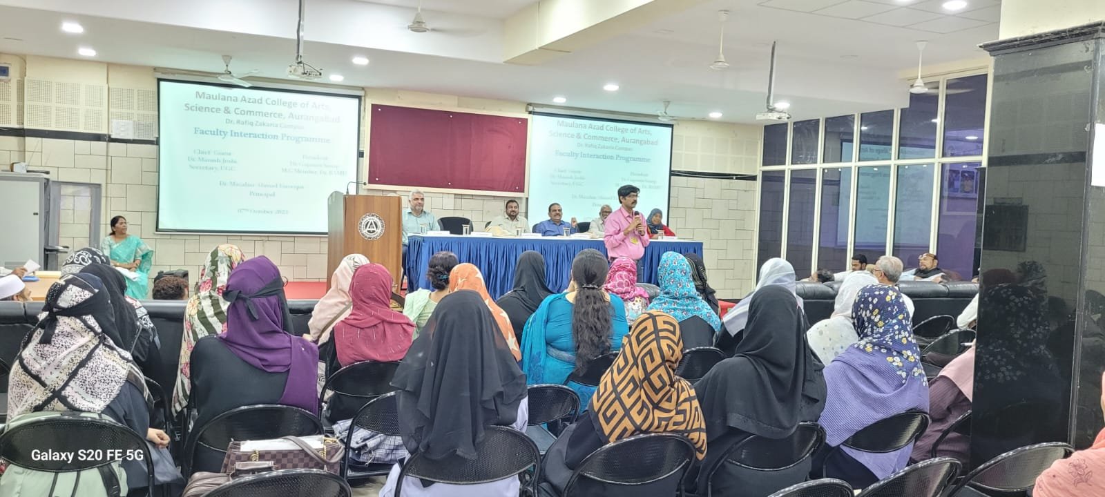 Interactions with teachers at Maulana Azad College of Arts Science and Commerce Aurangabad by Dr Manish Joshi, secretary UGC, New Dehli Presided over by Chancellor nominated MC Member Dr Gajanan Sanap. Principals and professors of Azad College & Dr Rafiq Zakaria Campus were present