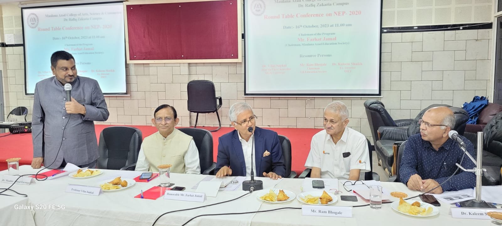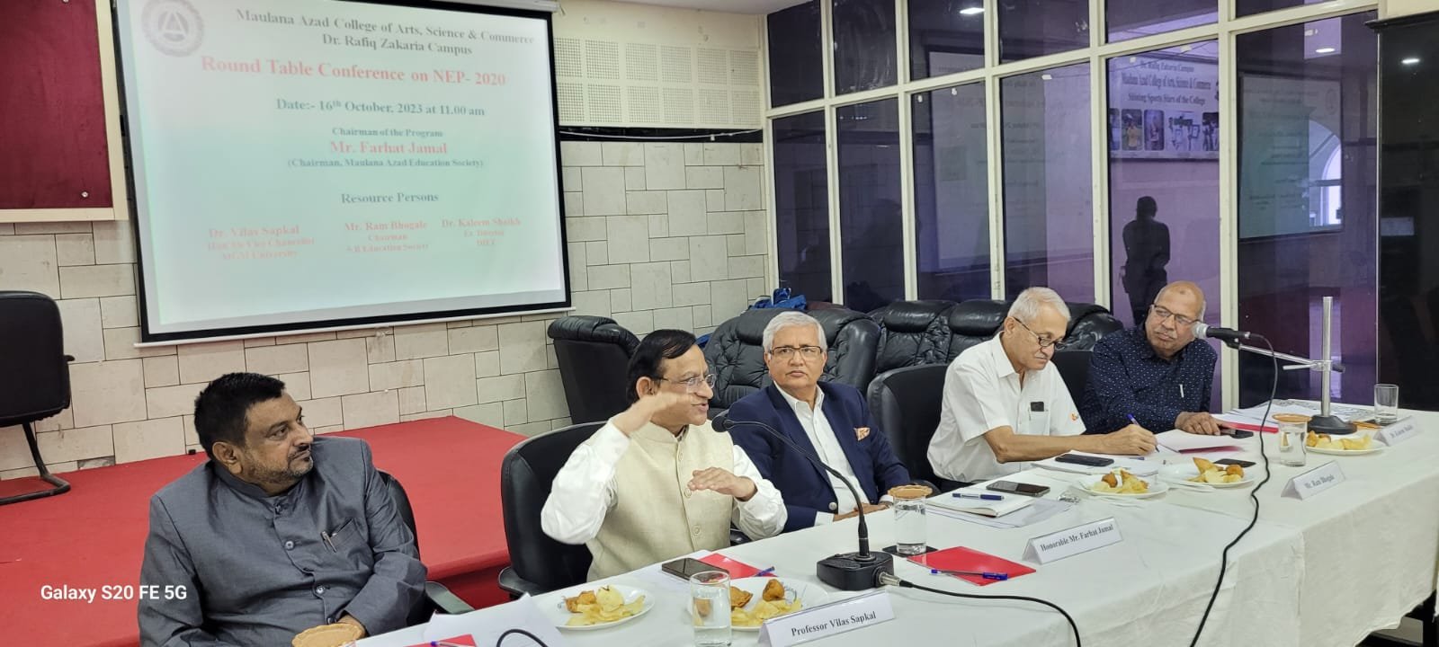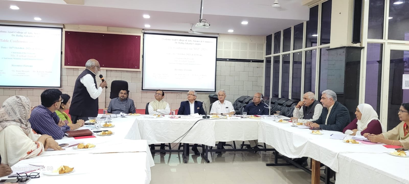Round table conference on NEP 2020.Honourable chairman Mr Farhat Jamal , Principal Dr Mazhar Ahmed Farooqui,Vice Chancellor Dr Vilas Sapkal MGM University Aurangabad,Mr Ram Bhogle President S.B education Society ,Dr Kaleem Sayyad DIET osmanabad and around 30 professors were present.it was grand Successful Conference & Cleared many Clouds of doubts about NEP.